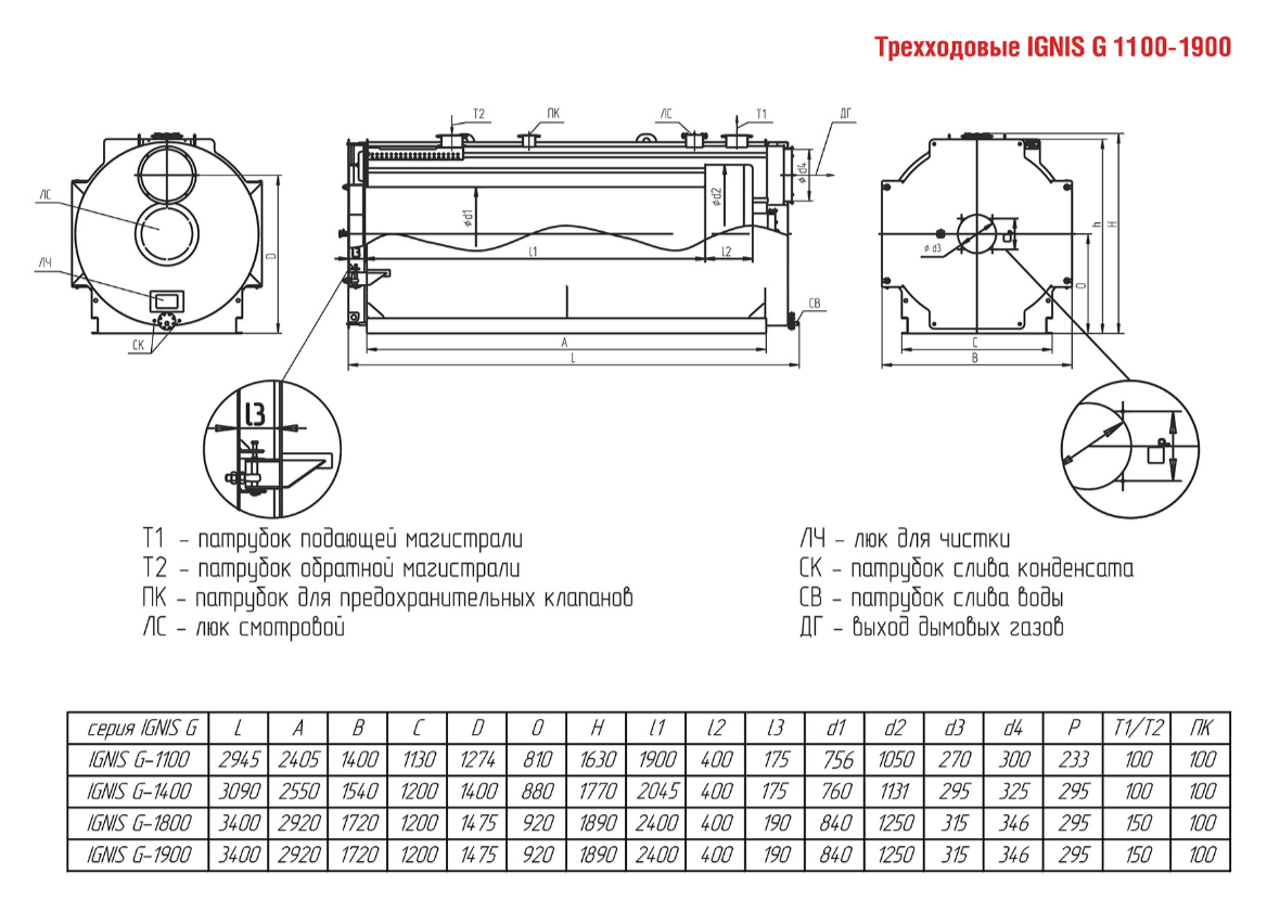 Технические характеристики водогрейного трёхходового котла ARCUS IGNIS G-1900